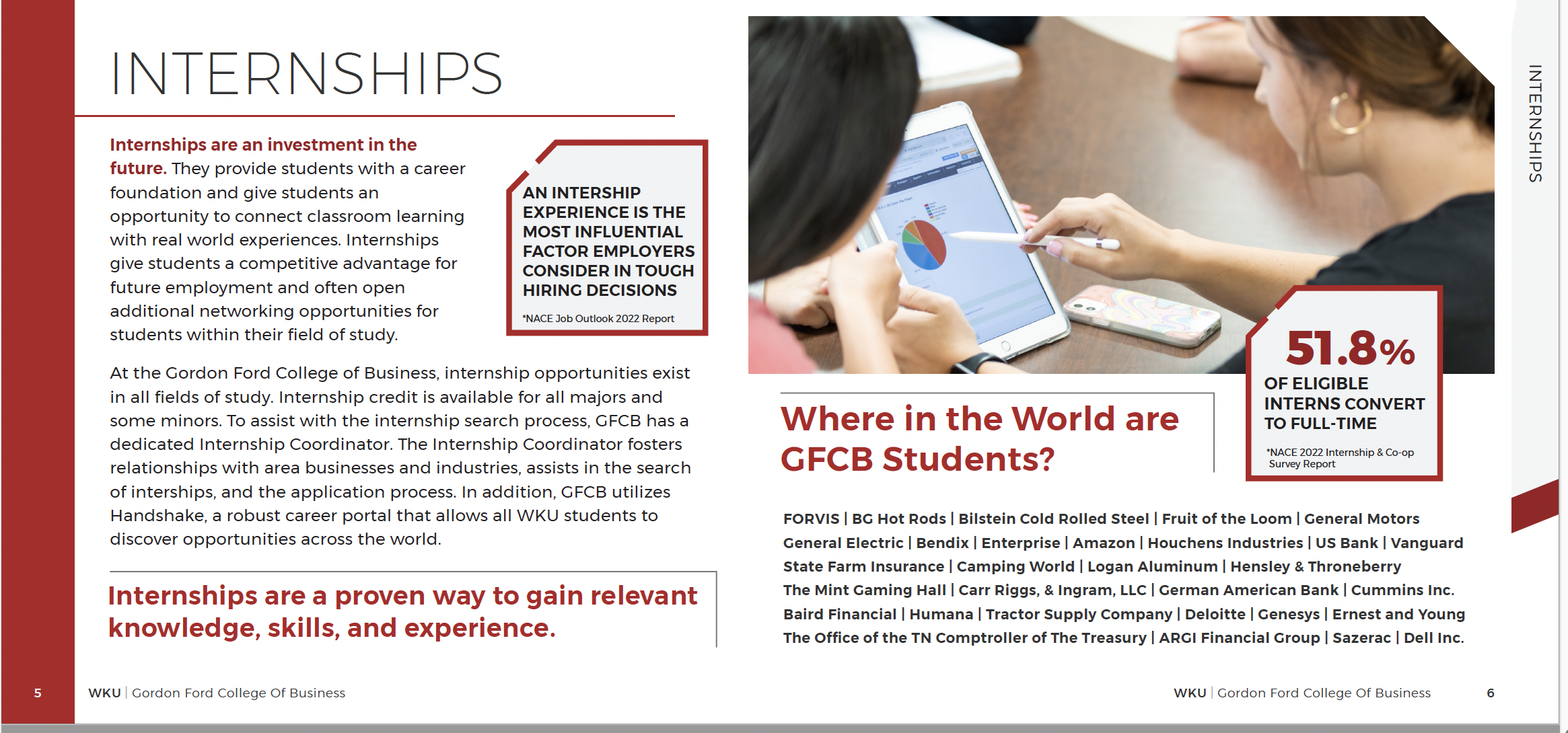 Internship opportunities exist in all fields of study at the Gordon Ford College of Business and many positions are available across multiple industries. Internship credit is available for all majors and some minors.