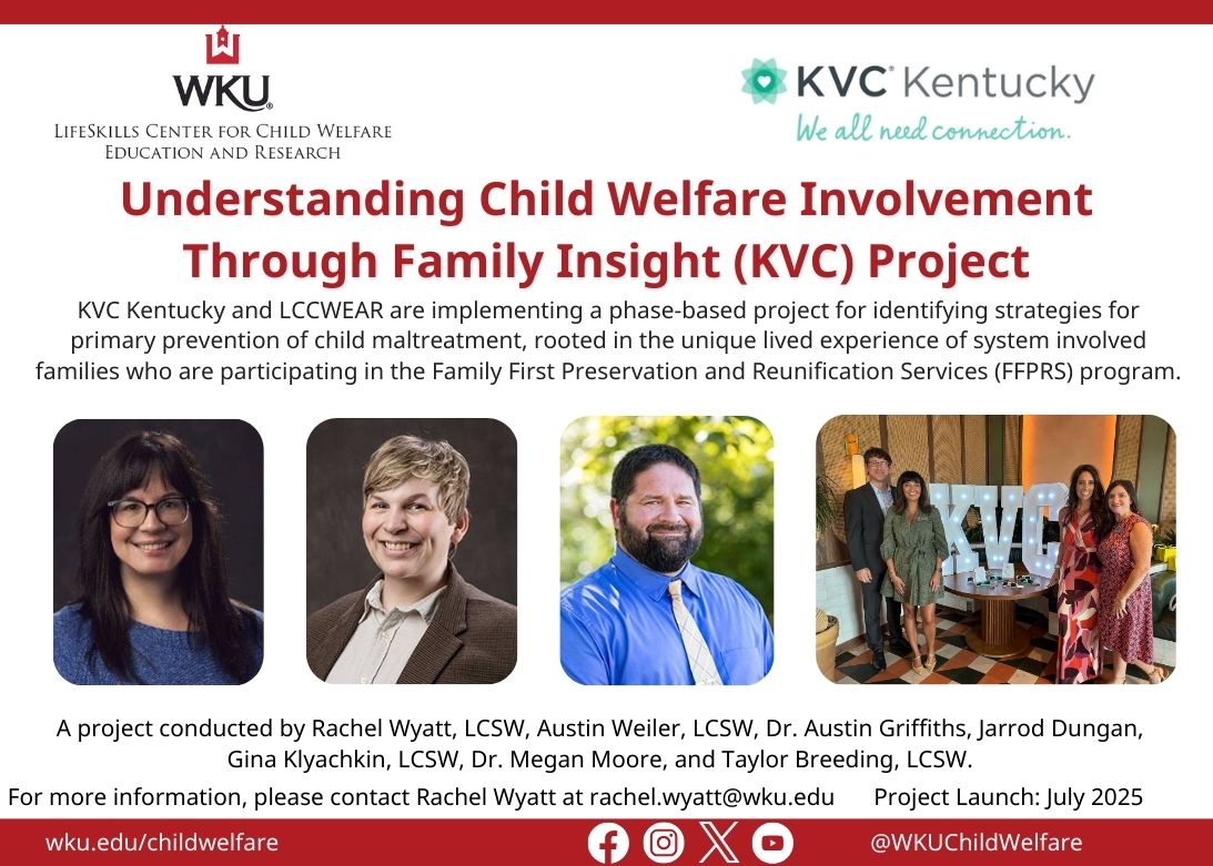 The LifeSkills Center for Child Welfare Education and Research is involved in several projects. Check out the ones below, with more to come. Also, make sure to follow us on social media @WKUChildWelfare!