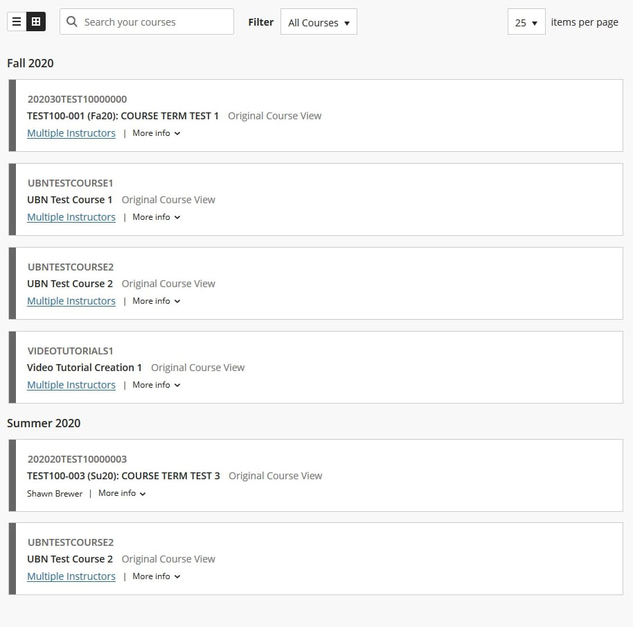 Much like My Courses and My WKU Bb a list of courses is available. However, in Blackboard Ultra Base Navigation there is more flexibility in terms of how courses are organized and how you would prefer the courses to be seen (list versus tiles).
